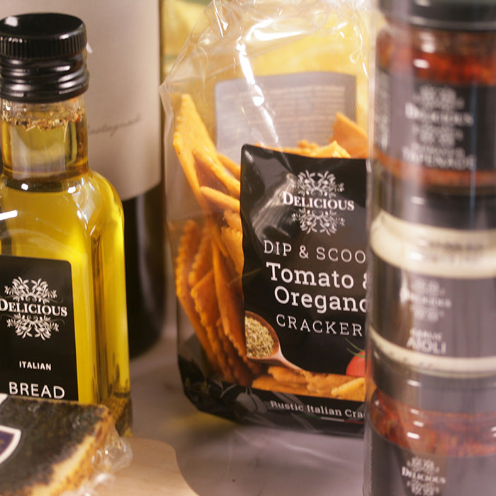 Een royaal geschenk met twee karaktervolle wijnen en een uitgebreide selectie delicatessen. De Beaurempart Grande Réserve en de Scaia Corvina vormen samen een sterk wijn-duo. Daarbij komen Spaanse ham, kazen en een variatie aan mediterrane hapjes: van olijven en patatas fritas tot tapenades, dips en knapperig toast. Een complete box om te delen en van te genieten.